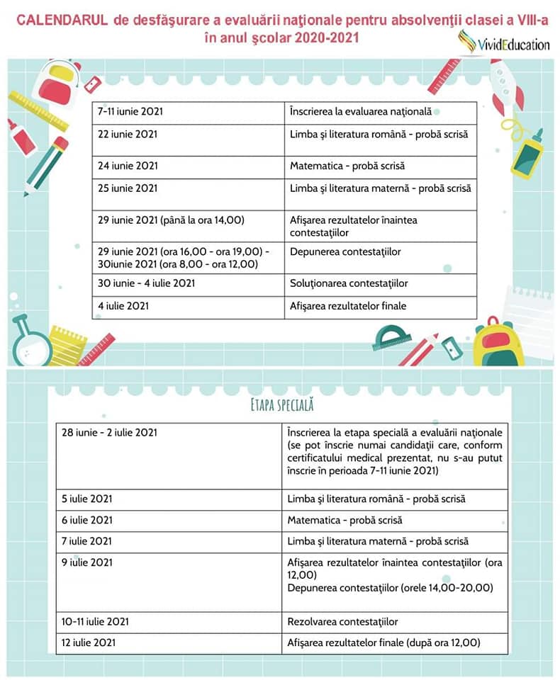 Marți, 22.06.2021, și joi 24.06.2021, se vor desfășura probele la examenul de Evaluare națională (marti limba română și joi matematica).